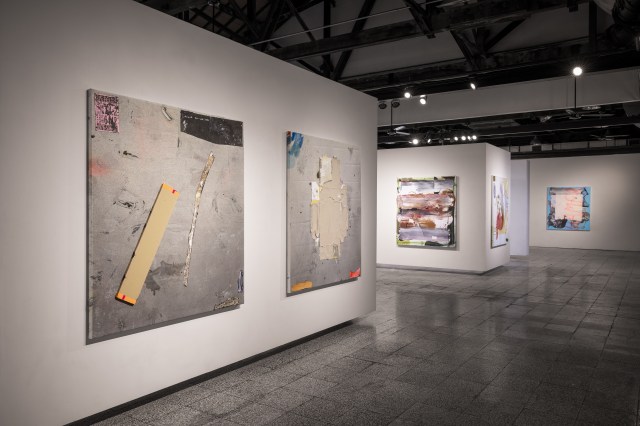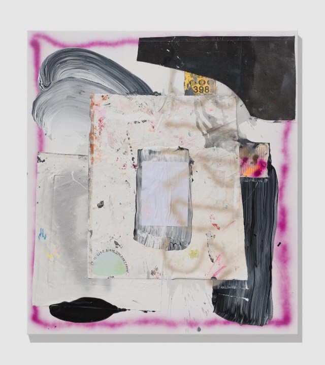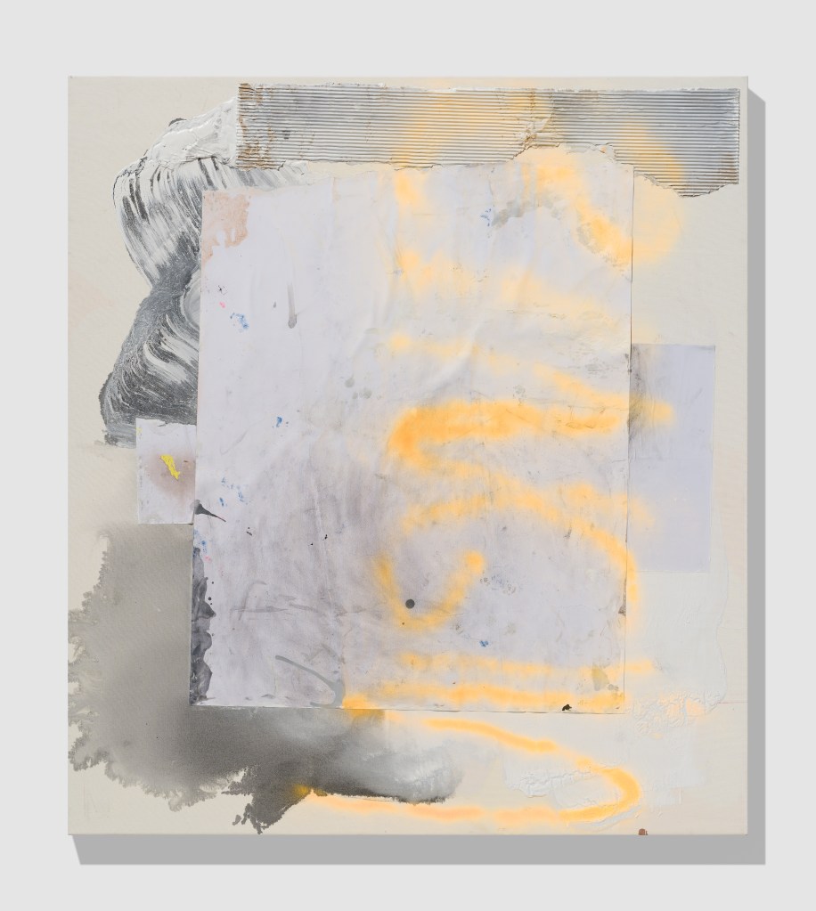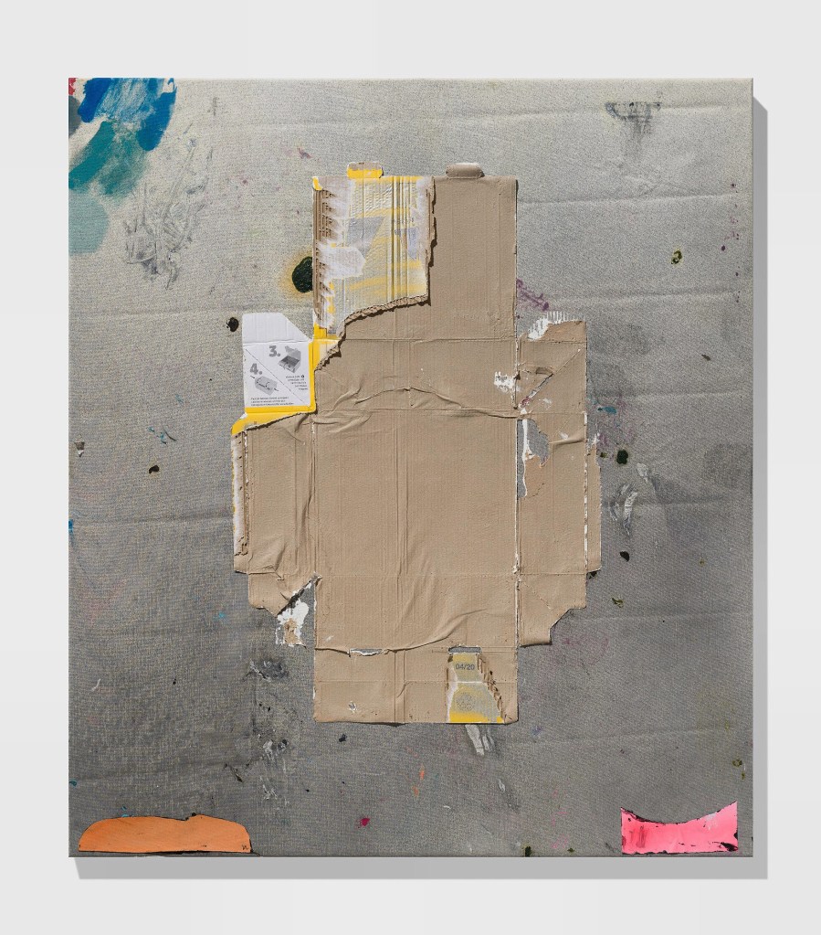 Greater Scoup, 2020, 140×125, acrylic, paper and DHL box on canvas