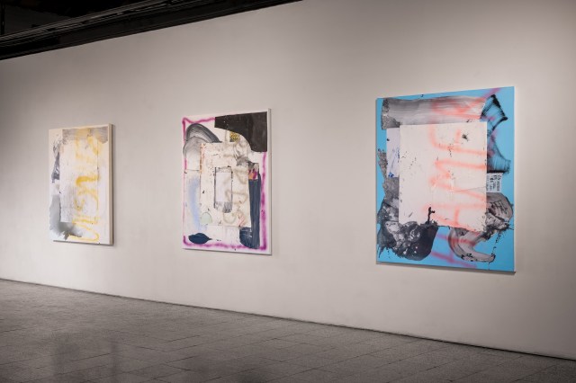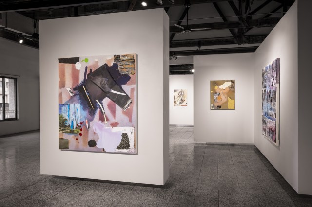 Chukar, 2020, 190x260cm, acrylic, spray paint, paper and housing ads on canvas