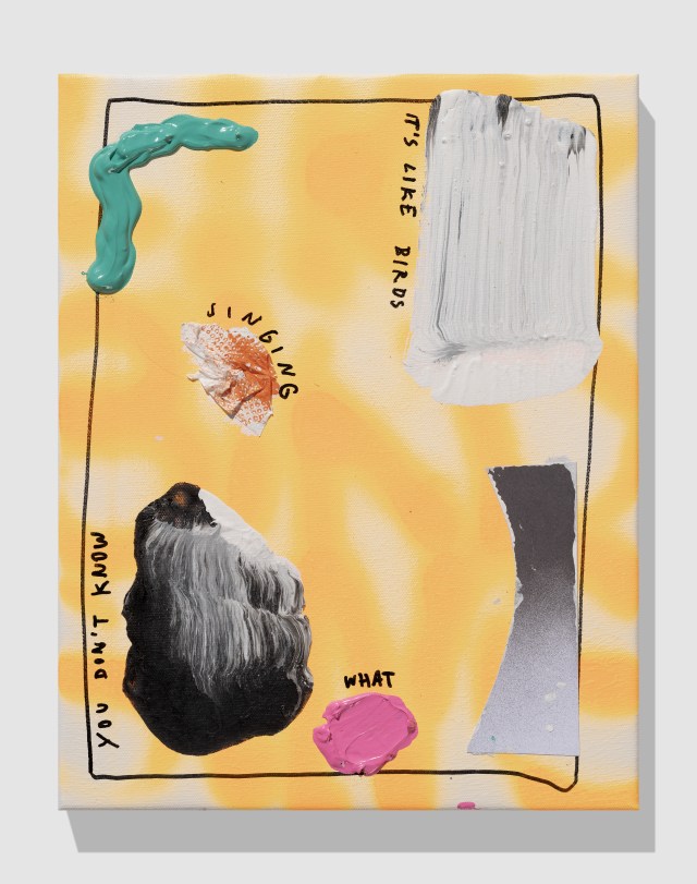 Dunlin, 2020, 50x45cm, Acrylic, Paper, Pen and Spray Paint on Canvas