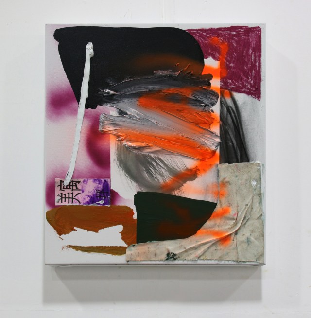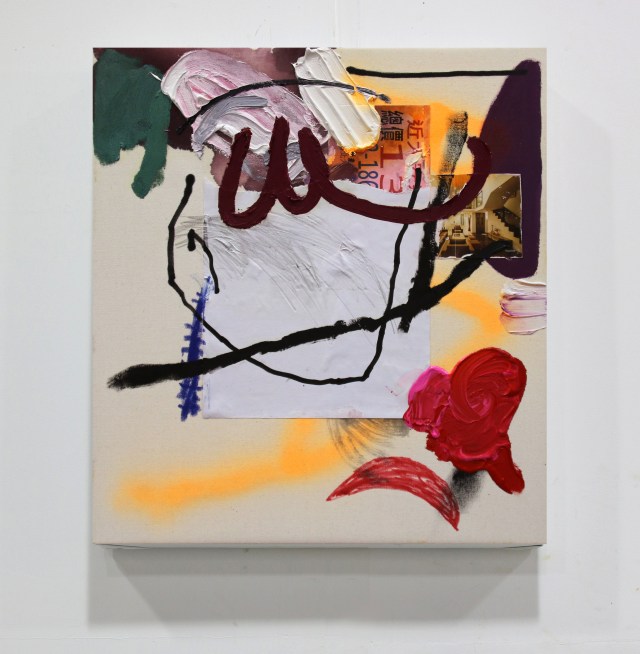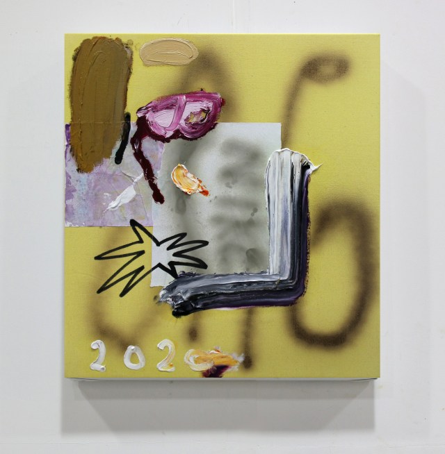 Excuse My French 2, 2020, 50x45cm, Acrylic, Spray Paint, Oil and Housing Ad on Canvas