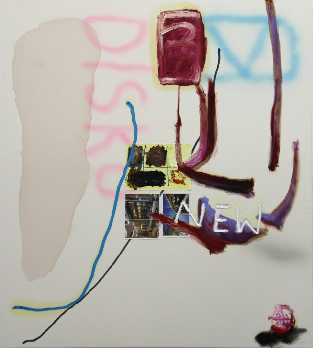 New Disco, 2020, 140x125cm, Acrylic, Spray Paint, Oil, Paper, Pen, Pictures and Housing Ad on Canvas
