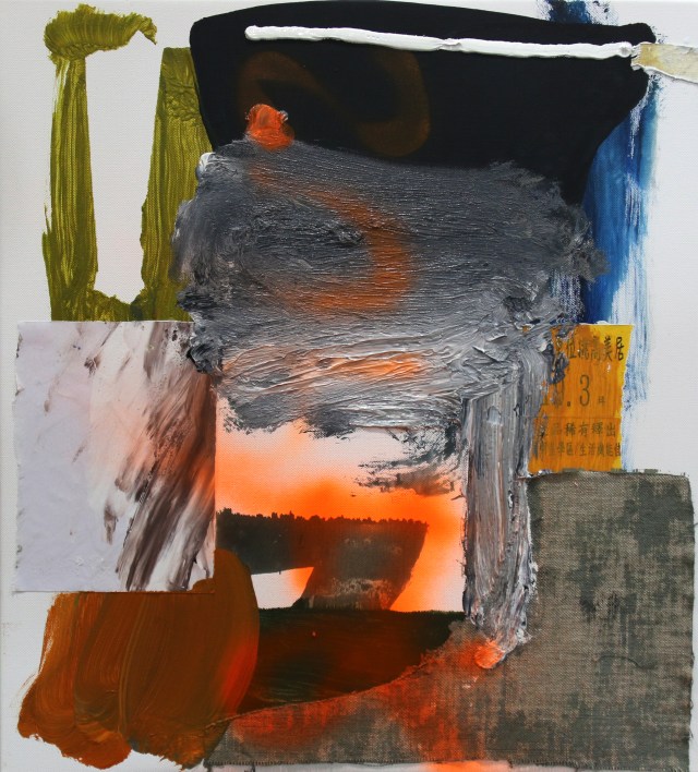 Local Supplier, 2020, 50x45cm, Acrylic, Paper, Spray Paint and Oil on CanvasMega, 2020, 50x45cm, Acrylic, Oil, Spray Paint, Housing Ad, Pen and Oil on Canvas